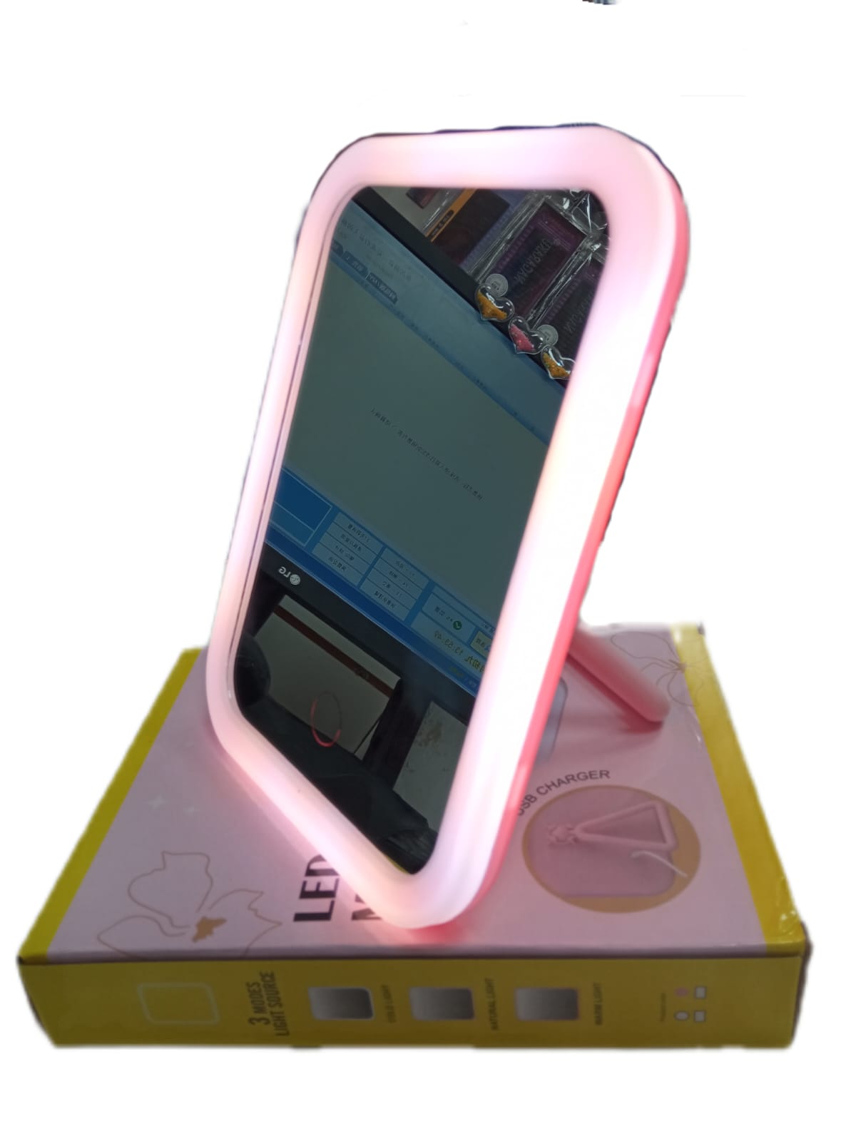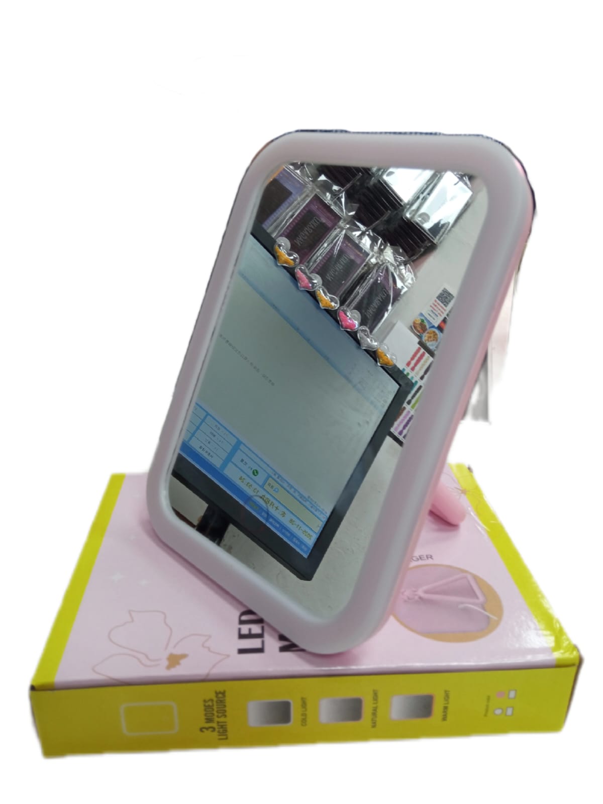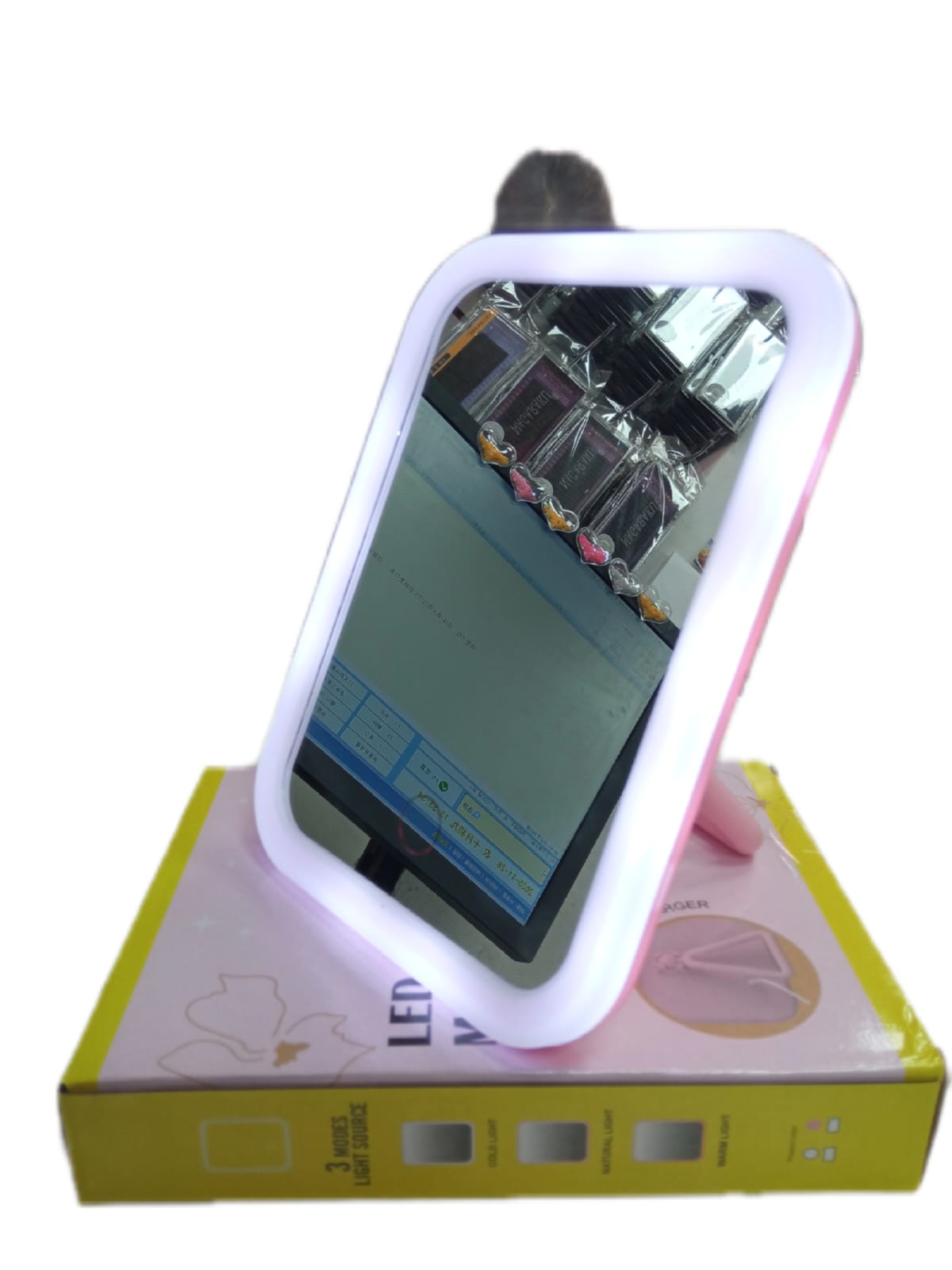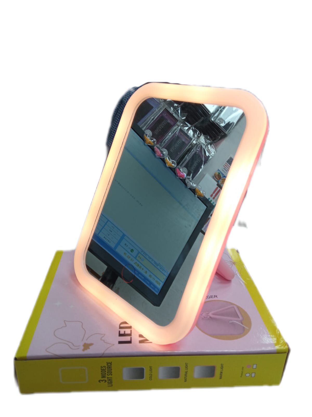 espejo con led recargable tres tipo de luz/ calida, fria y neutro